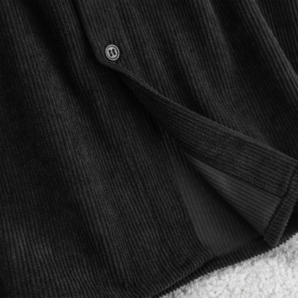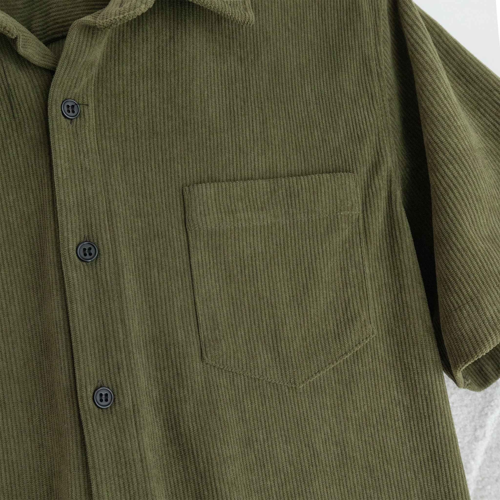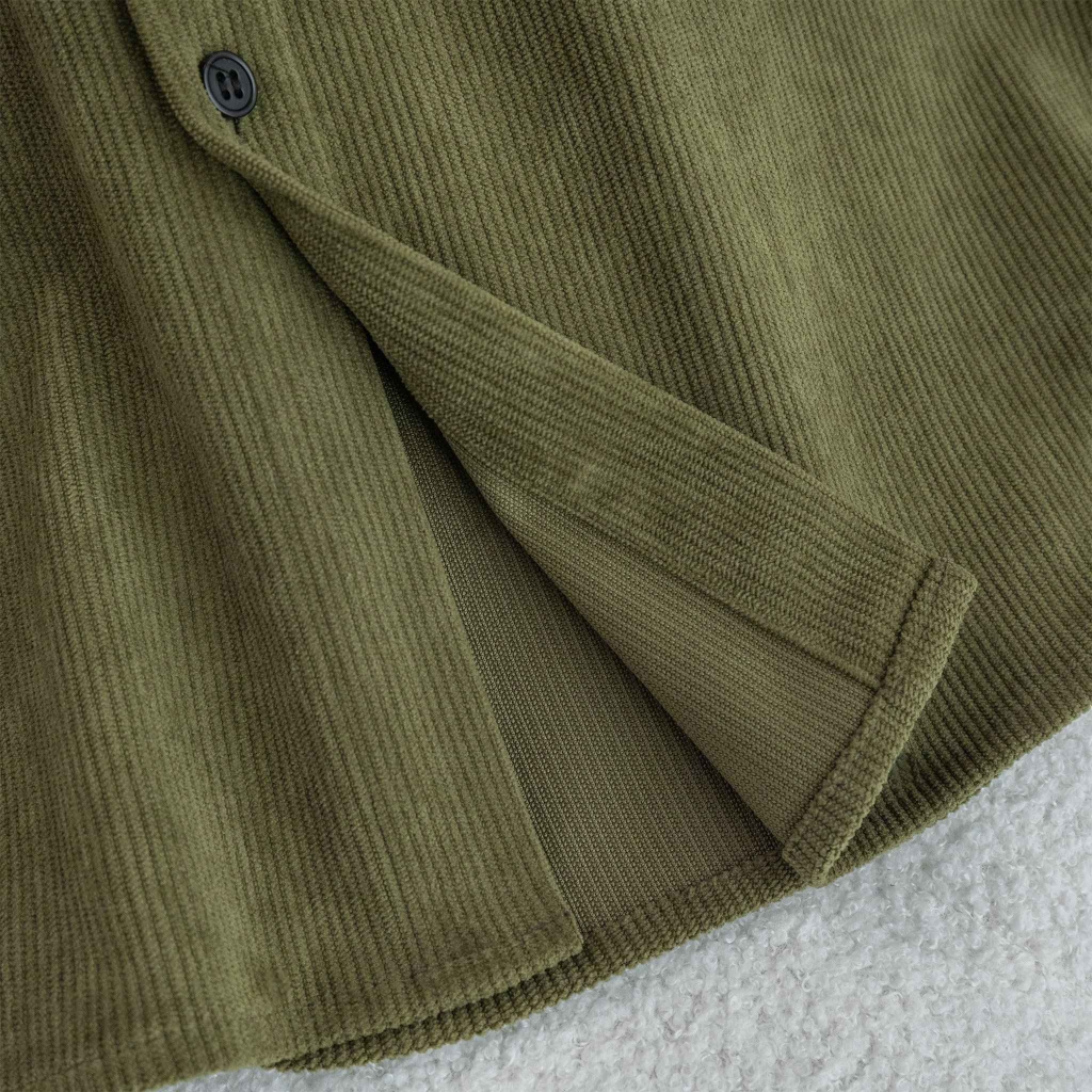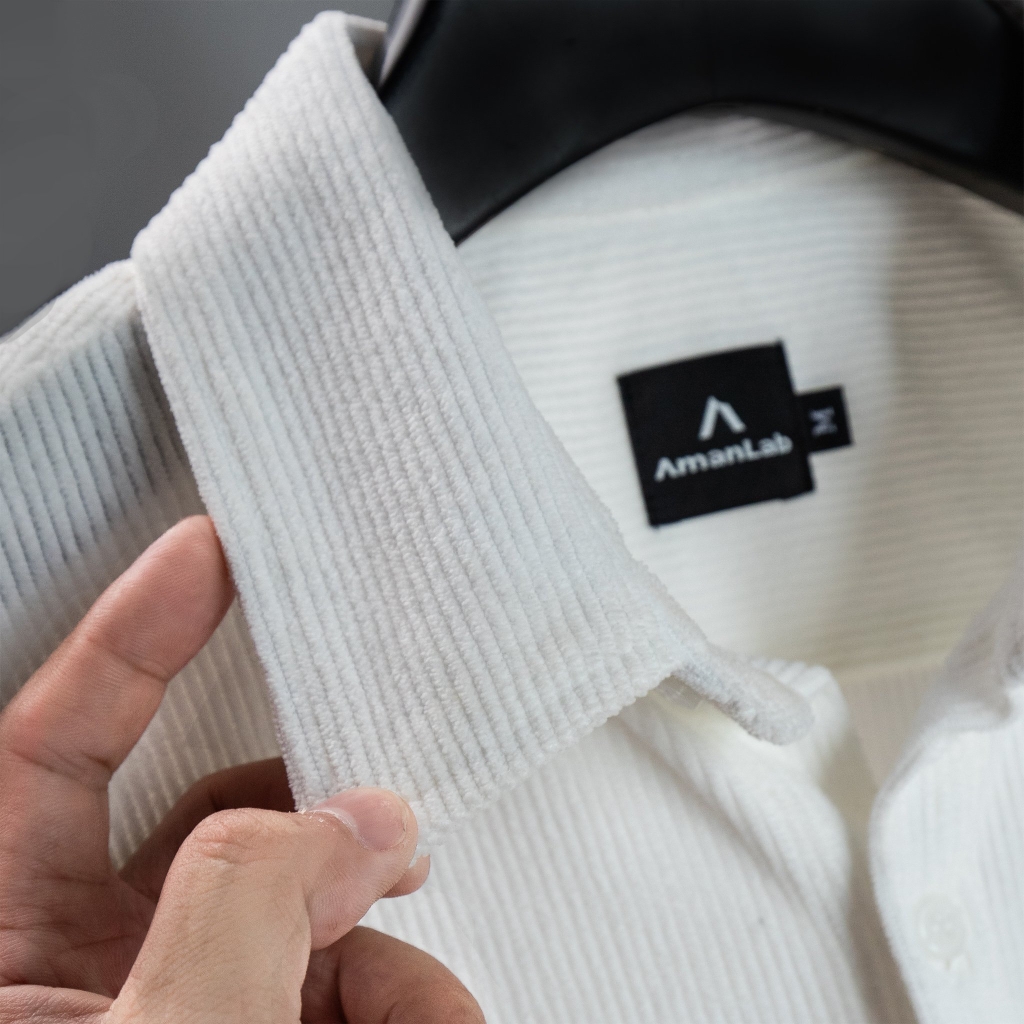 Chi tiết áo sơ mi nam nữ ngắn tay chất vải cotton nhung tăm , form áo suông rộng, regular AMANLAB