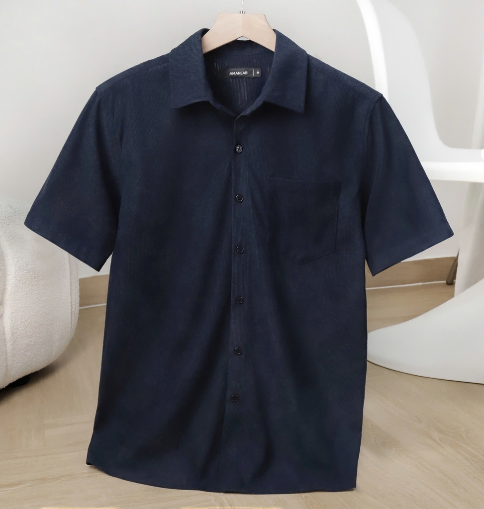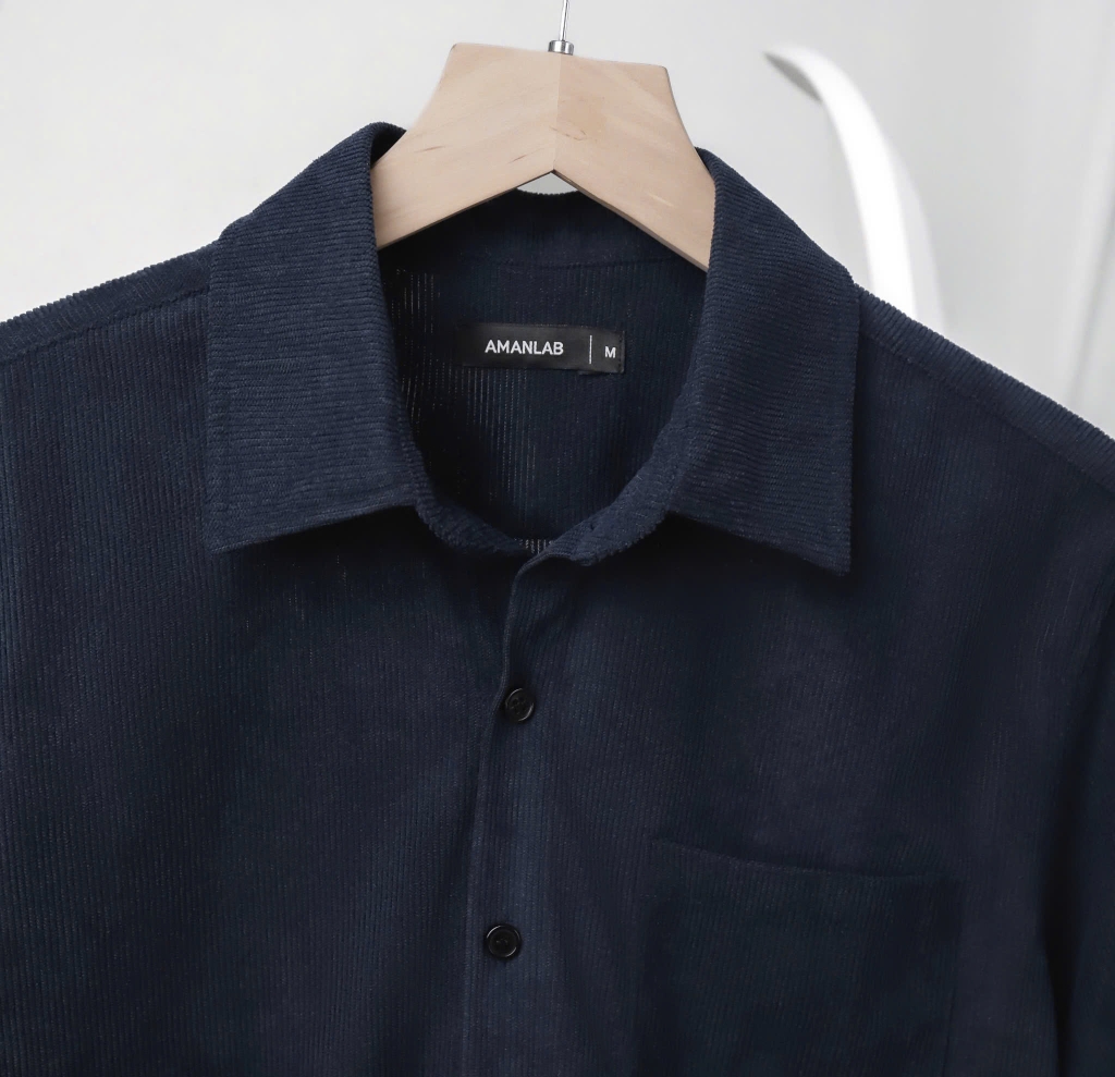 Đến tận nơi nhận hàng trả,Chi tiết áo sơ mi nam nữ ngắn tay chất vải cotton nhung tăm , form áo suông rộng, regular AMANLAB